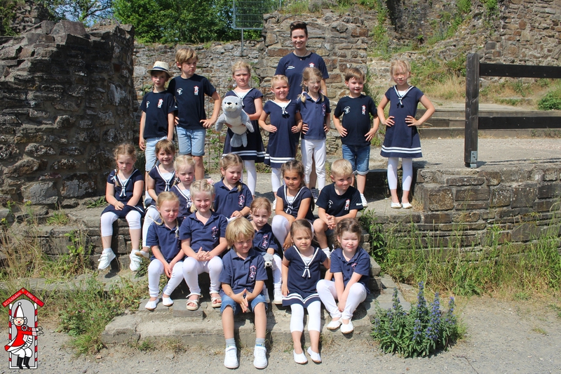 In der jüngsten Tanzgruppe der KG Schladern tanzen Kinder im Alter von drei bis neun Jahren. Kurz nach Karneval startet direkt das Training für den Tanz der neuen Session, und dann geht es hier immer ganz besonders wuselig zu. Umso bemerkenswerter ist, was die kleinen Tänzerinnen und Tänzer und ihre Trainerin pünktlich zum Sessionsstart auf die Bühne bringen! Mit viel Begeisterung und Durchhaltevermögen sind bei den Siegmatrosen auch die Jüngsten Woche für Woche beim Training dabei und zeigen, dass Spaß und Disziplin Hand in Hand gehen können – um über sich selbst hinauszuwachsen und schließlich in der Karnevalszeit voller Selbstvertrauen und mit strahlenden Augen vor großem Publikum auf die Bühne zu marschieren. Ob Radschlag, Gardeschritt oder Hebefigur: Hier darf jeder zeigen, was er kann und sich in die Gruppe einbringen.